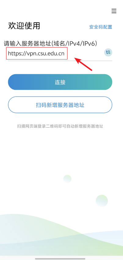 2. 移动端:应用市场搜索“aTrust”并下载,安装完成并打开,在服务器地址一栏输入:https://vpn.csu.edu.cn,点击“连接”。